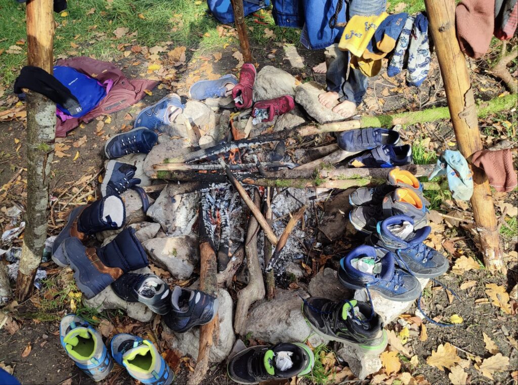 Gemeinsam verbringen wir die Tage draussen in Wäldern, auf Wiesen und an Bächen. Wir kochen auf dem Feuer, bauen Hütten, schnitzen, beobachten Tiere, stauen Bäche und geniessen viel Zeit für freies Spiel, Bewegung und Entdeckungen.