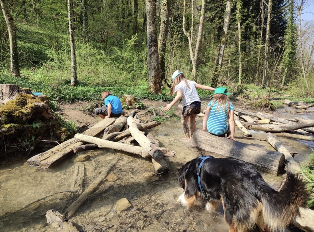 Gemeinsam entdecken wir Wälder, Wiesen und Bäche, kochen auf dem Feuer, bauen Hütten, schnitzen Stöcke und beobachten Tiere. Es bleibt viel Zeit für freies Spiel, Bewegung und eigene Ideen.